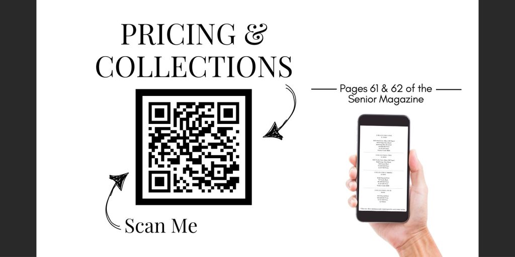 Make sure to review pricing! Check out the QR code by scanning it with your phone to be linked to the full collection pricing.